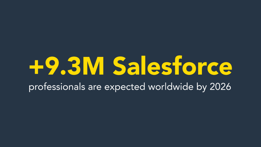 For example, the Salesforce ecosystem estimates that by 2026 there will be more than 9.3 million professionals working with Salesforce technologies worldwide.